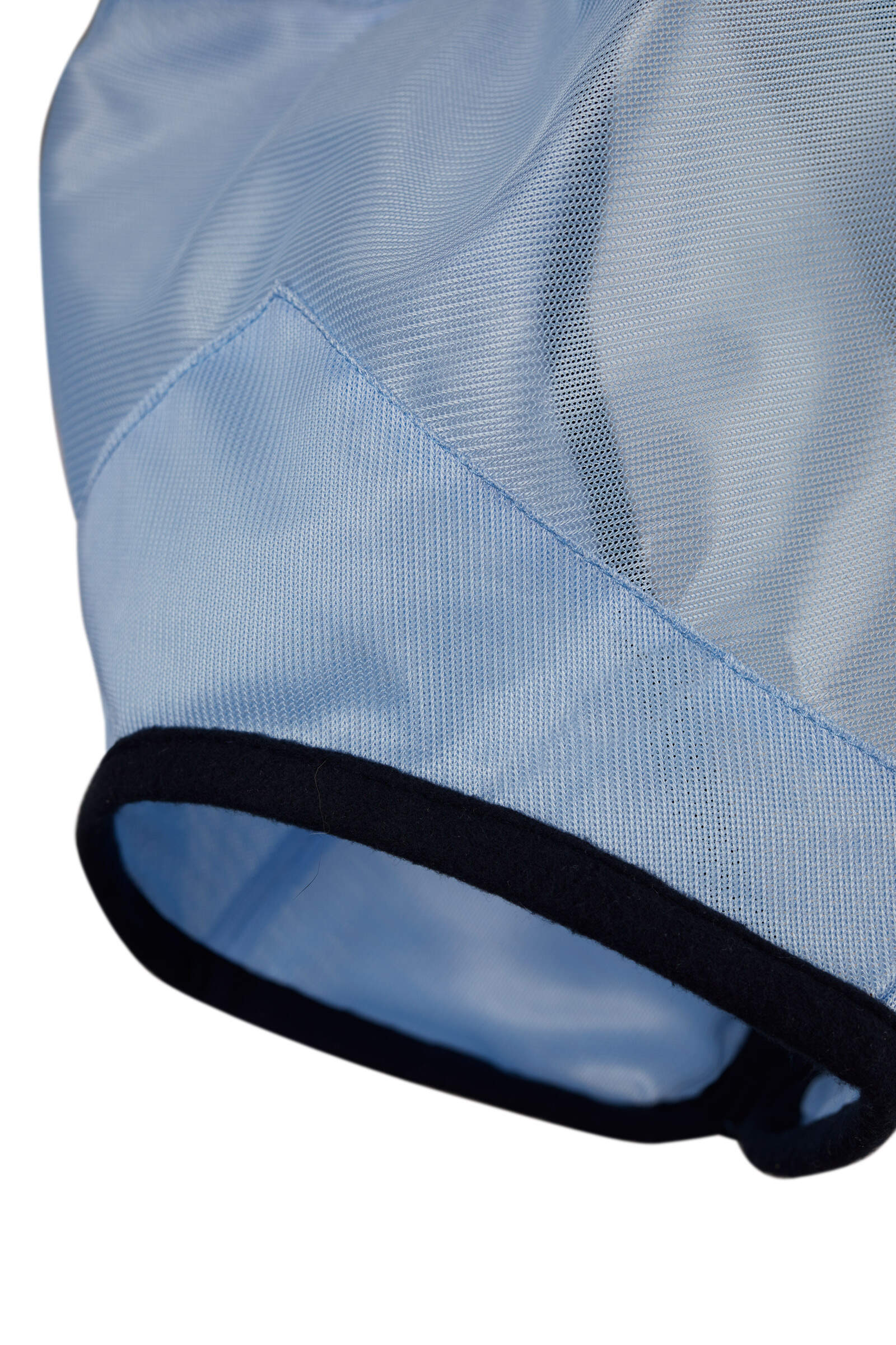 Fly hood made of soft polyester mesh with fleece binding around the edges for a smooth, sleek feeling against the horse. Opening at forehead so the mane can come out.