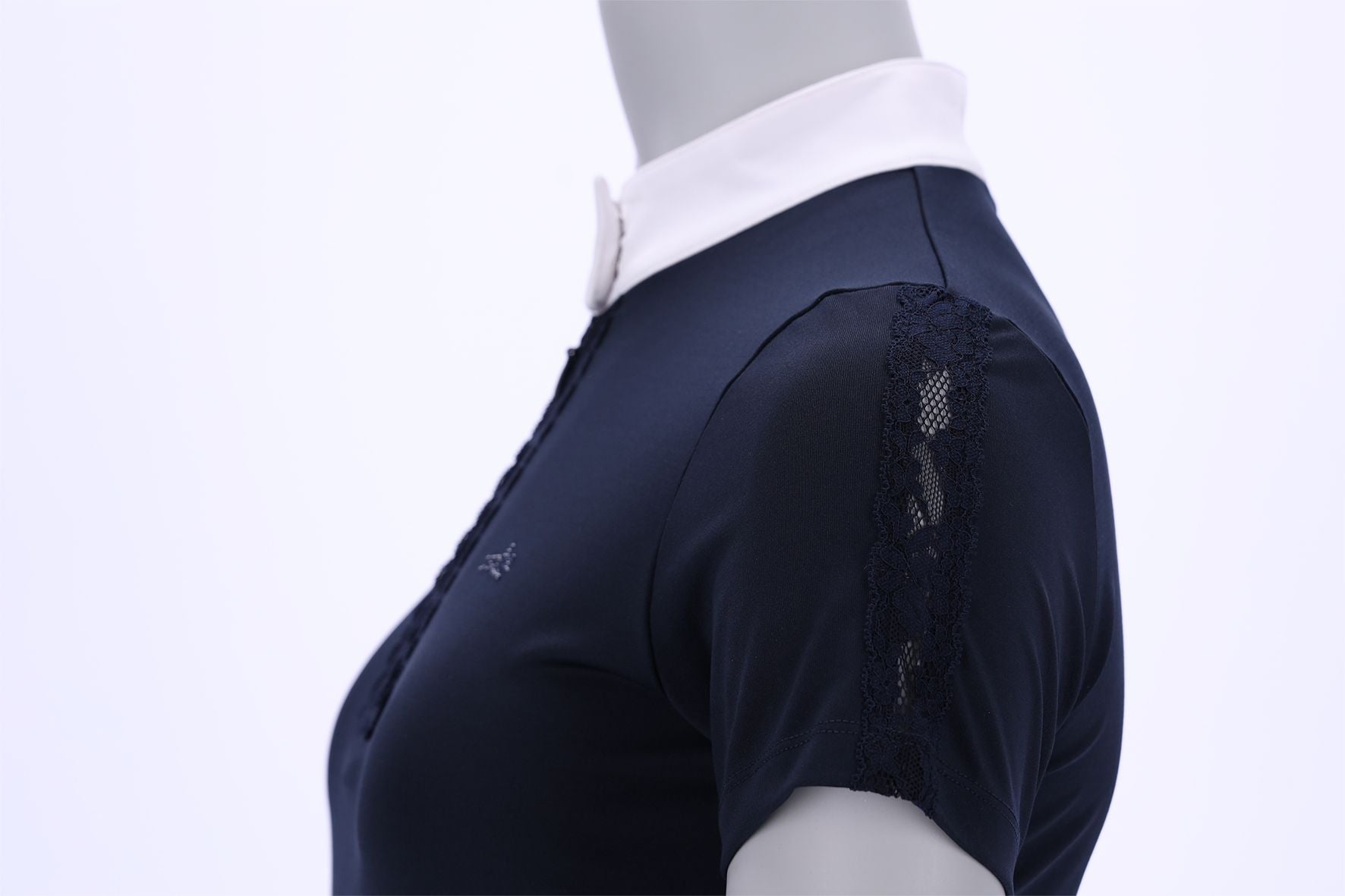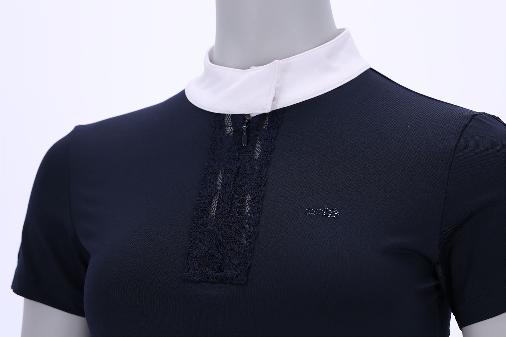 As a functional and feminine ladies' show shirt, the SPChristina Style by Schockemöhle Sports combines modern style with sophisticated material properties. It was developed to meet the highest demands in equestrian sport. The invisible zipper detail in the center front gives this shirt an elegant touch, while lace accents next to the zipper and in the middle of the sleeves emphasize feminine details.