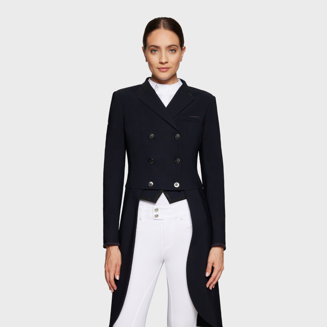 The Women's Frac Crystal Leaf features delicate genuine Swarovski Crystal 'cherry blossom' detailing which highlights the lapel, points and reverse of the jacket. Tailored for an elegant fit with a technical, breathable, high stretch material for optimum freedom of movement and comfort for the rider.