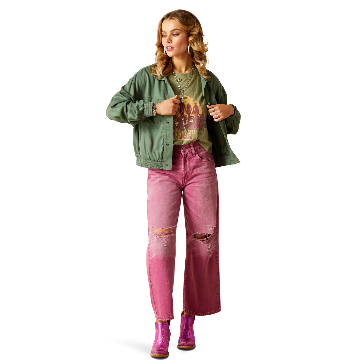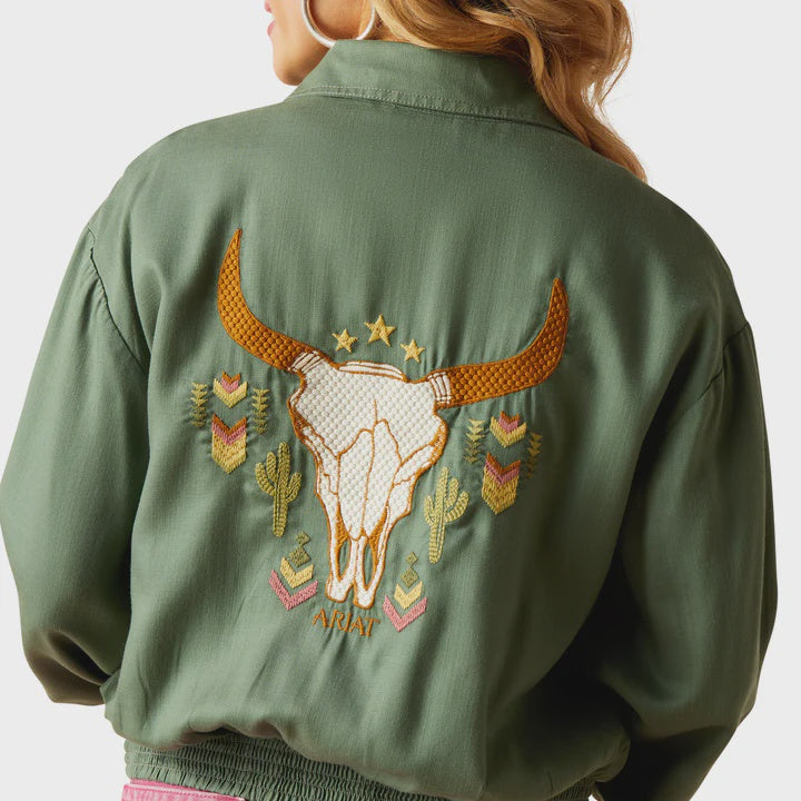 We took the timeless bomber silhouette and punched it up with spring-inspired colors and intricate Southwestern embroidery. Versatile yet fashion-forward, it's the perfect lightweight layering piece.