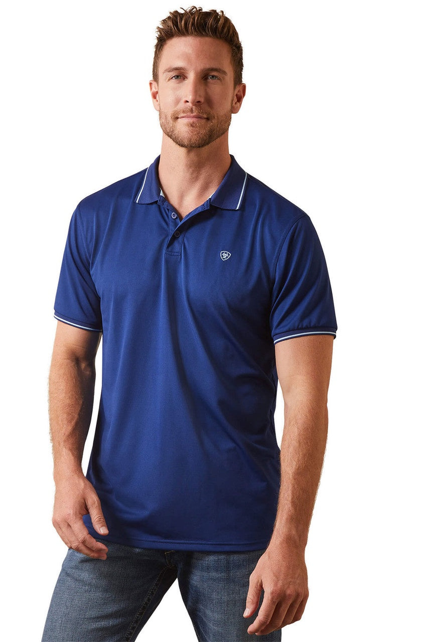 Ariat Logo Mens Fitted SS Polo Cloudburst Blue
