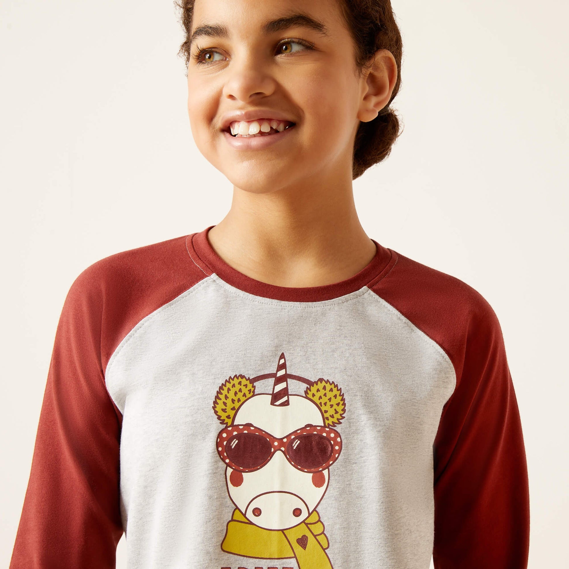 Ariat Uni Anime Youths LS Tee Heather Grey & Fired Brick