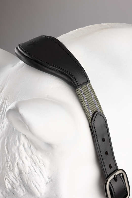 - Webbed strap with Lurex stripe on cheek, nose and crown