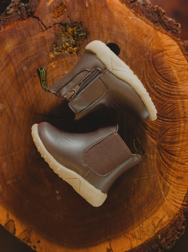 Cute as a button. Following in the tradition of the quintessential Baxter elastic sided boot, your baby can match the whole family in the brown Jack boot. Featuring an elastic side and side zip for easy on and off, plus a rubber sole – watch them take their first steps in Baxter's
