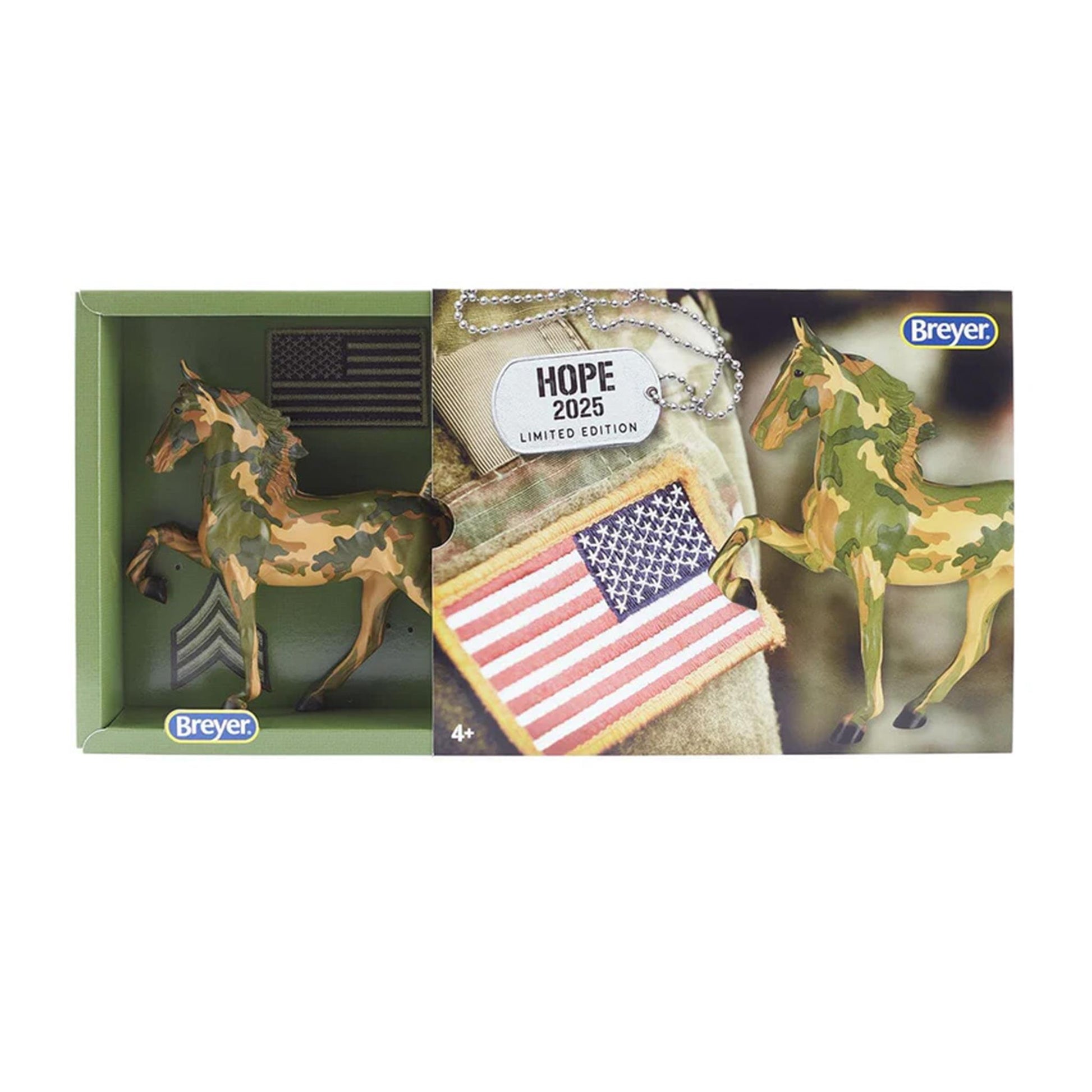 Meet Honor - Breyer’s mission of Hope continues with the introduction of Honor, our camouflaged-patterned American Saddlebred stallion. Equine-assisted therapy has proven to be a valuable tool in healing trauma and giving Veterans a chance to build a soulful, positive relationship. Through the power of the horse, they rebuild their trust and confidence in the world around them. Healing begins with hope, and hope begins with you!