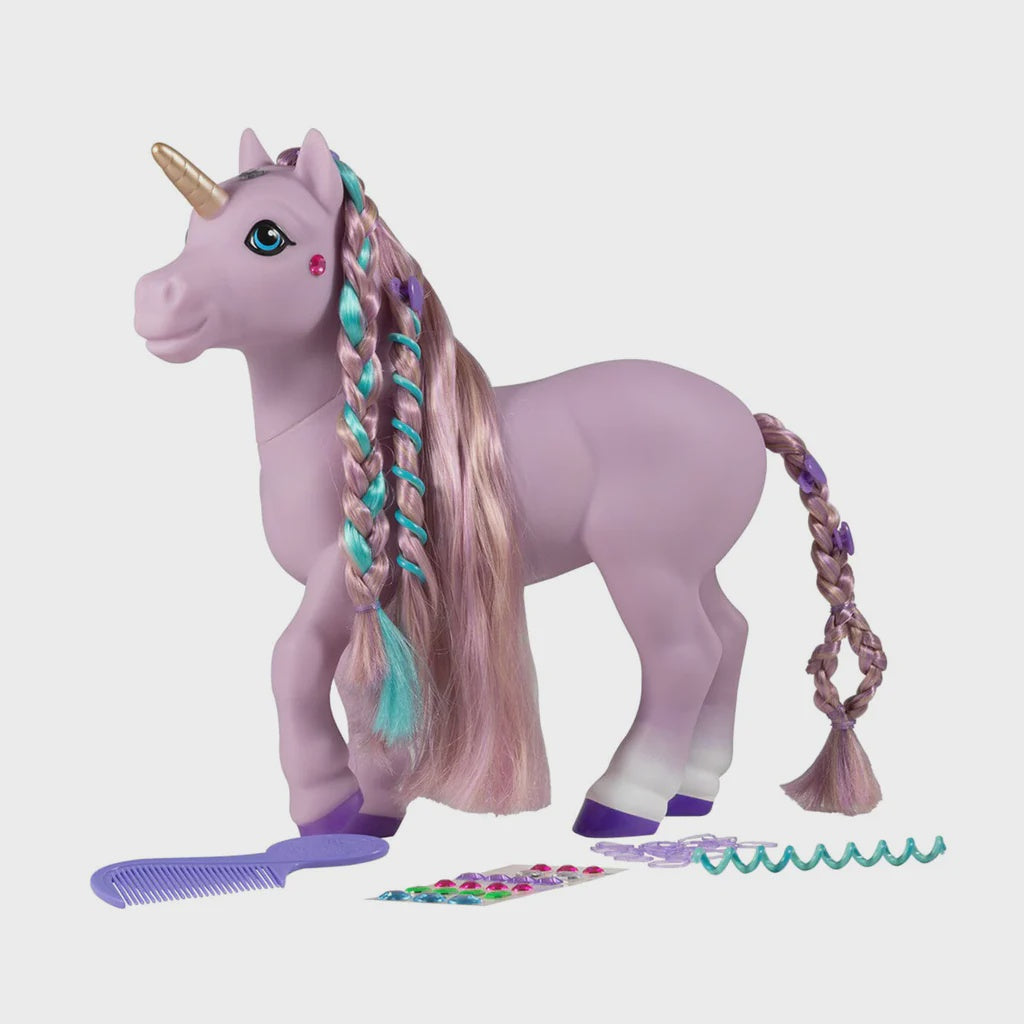 Meet Iris - our new styling pony magical unicorn! Bring your hair creations to life and design glamorous hair styles with her tangle-free mane and tail. Add hair accessories and gem stickers to make your own unique creation!