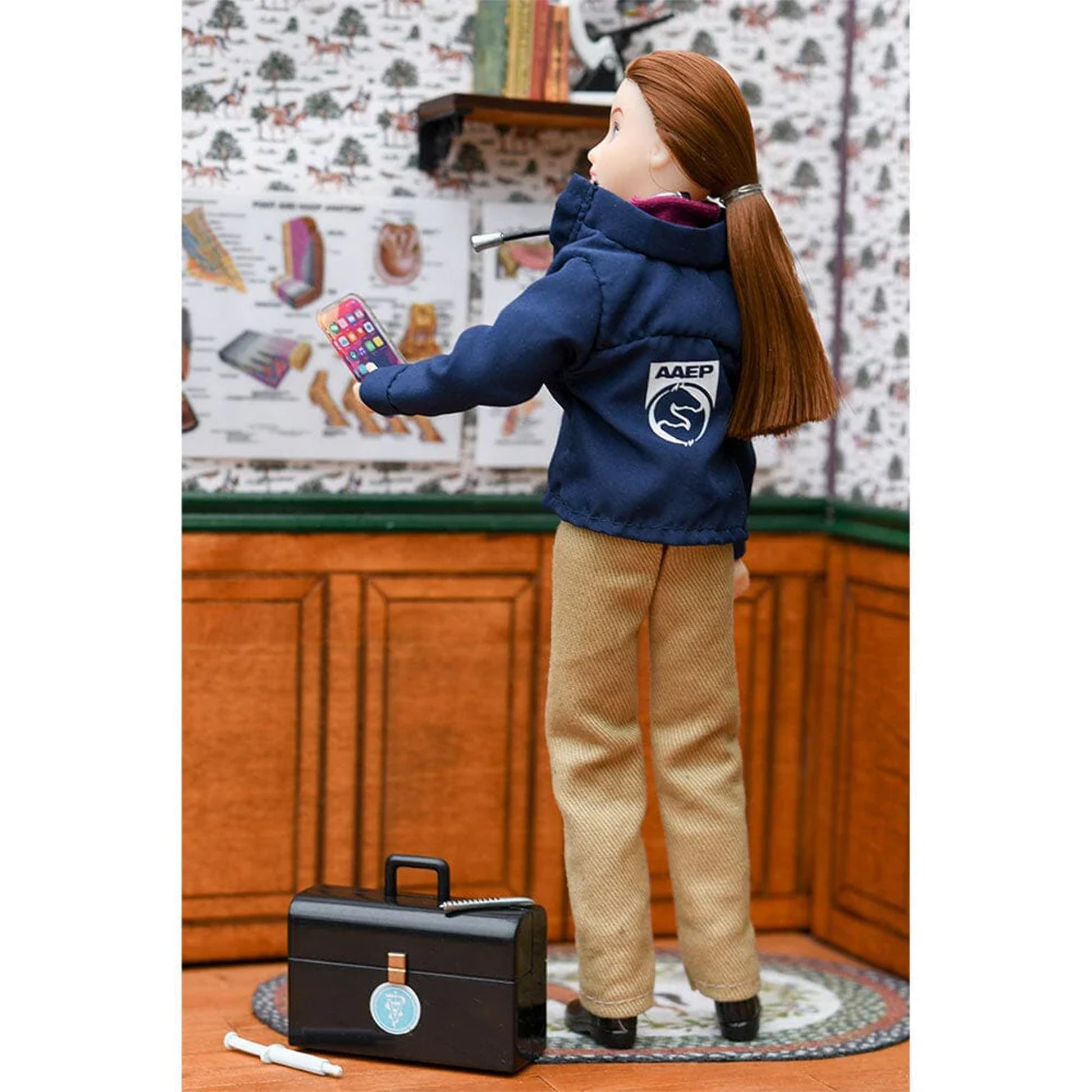 Veterinarian Riley is here to help! Every farm and horse owner needs a good vet on call. Riley is a fully-articulated figure that stands 8" tall and is ready to ride. She comes with her vet bag, stethoscope, thermometer, syringe, bandages, and cell phone.