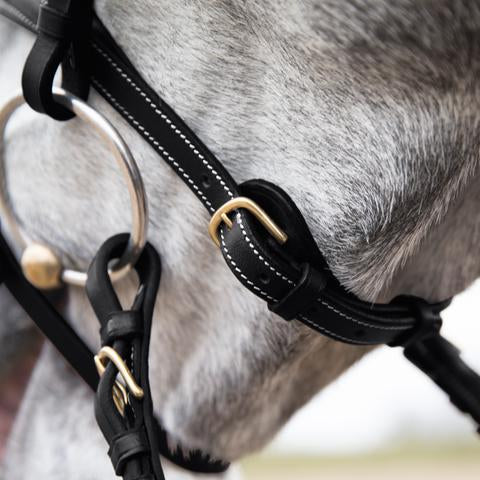 The Constance Bridle is a raised, padded flash snaffle bridle with fancy stitching detail. Made from soft, supple leather with stainless steel buckles.