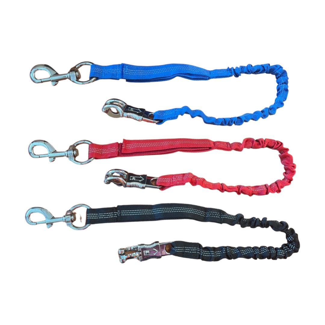 The Eureka Bungee Breakaway Trailer Tie is a strong stretchy trailer tie constructed to reduce the effects of sudden shock when the horse is tied up.