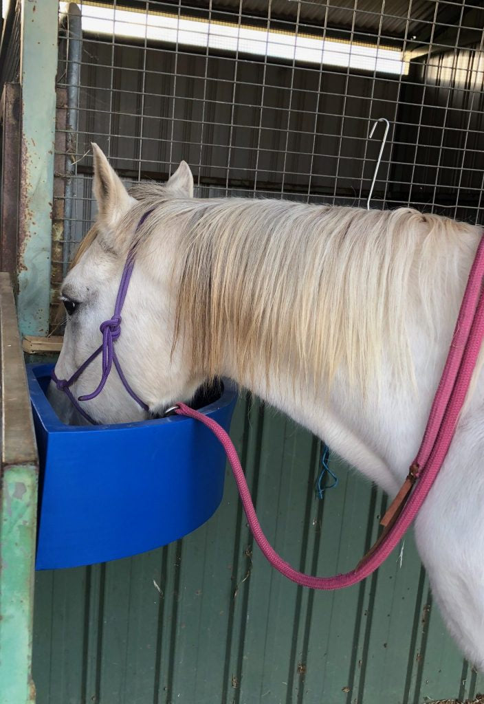 A popular 45 litre feeder similar in concept to the D Feeder but fits in corners. Is ideal for stables, paddocks and also useful for liquid feed supplements. The sides are 460 mm long and the height is 250 mm with supporting galvanized fence brackets.