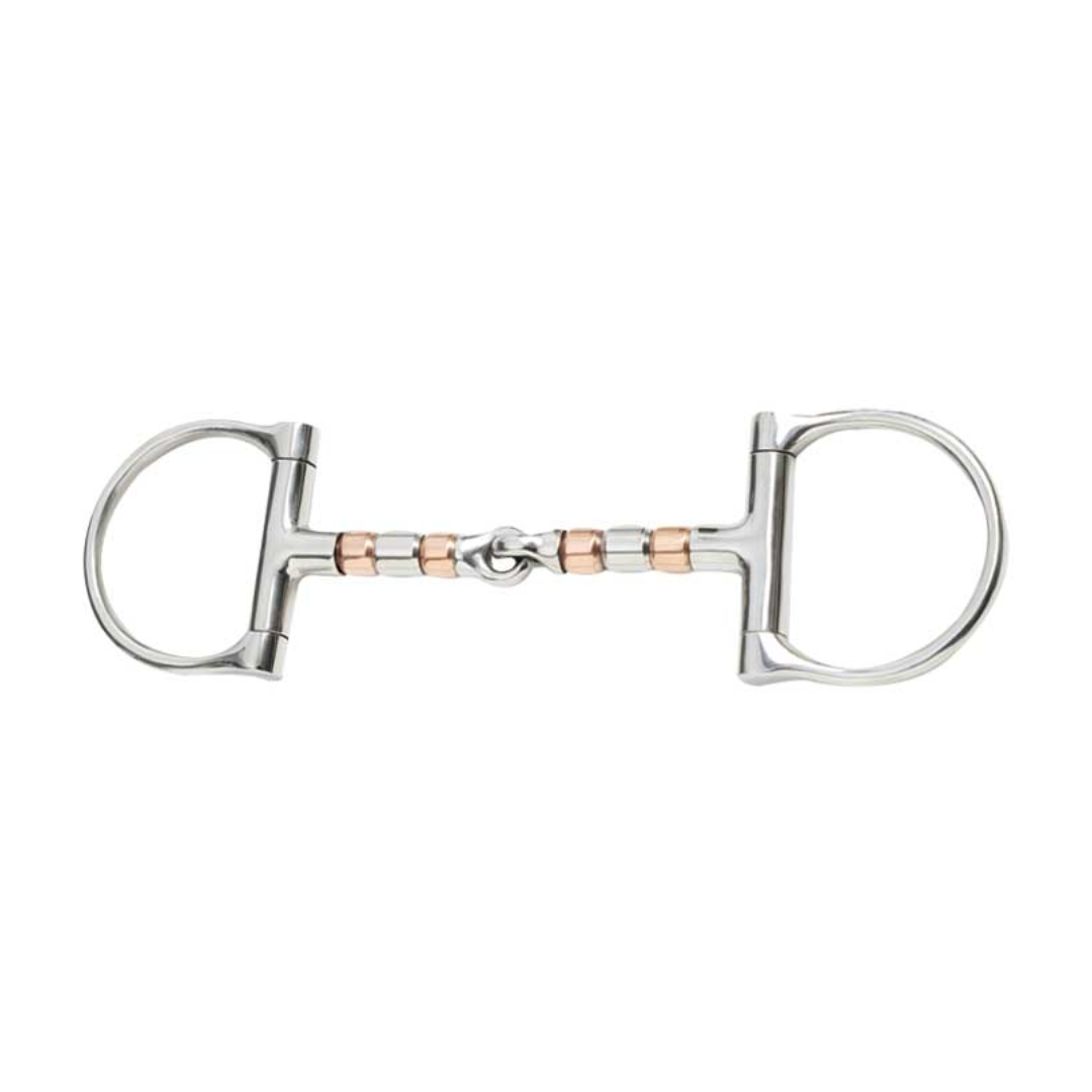 Dee Bit with copper and stainless rollers which helps the Horse to salivate, keeping the Horses mouth soft and moist which can lead to help pacifying the horse.