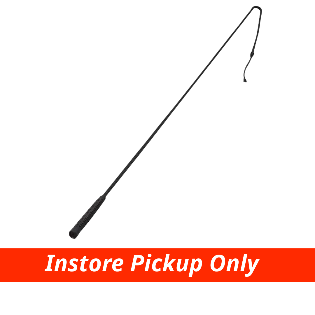 This buggy whip design is economical and very practical for everyday use. It features a braided nylon shaft and rubber pimple hand grip.