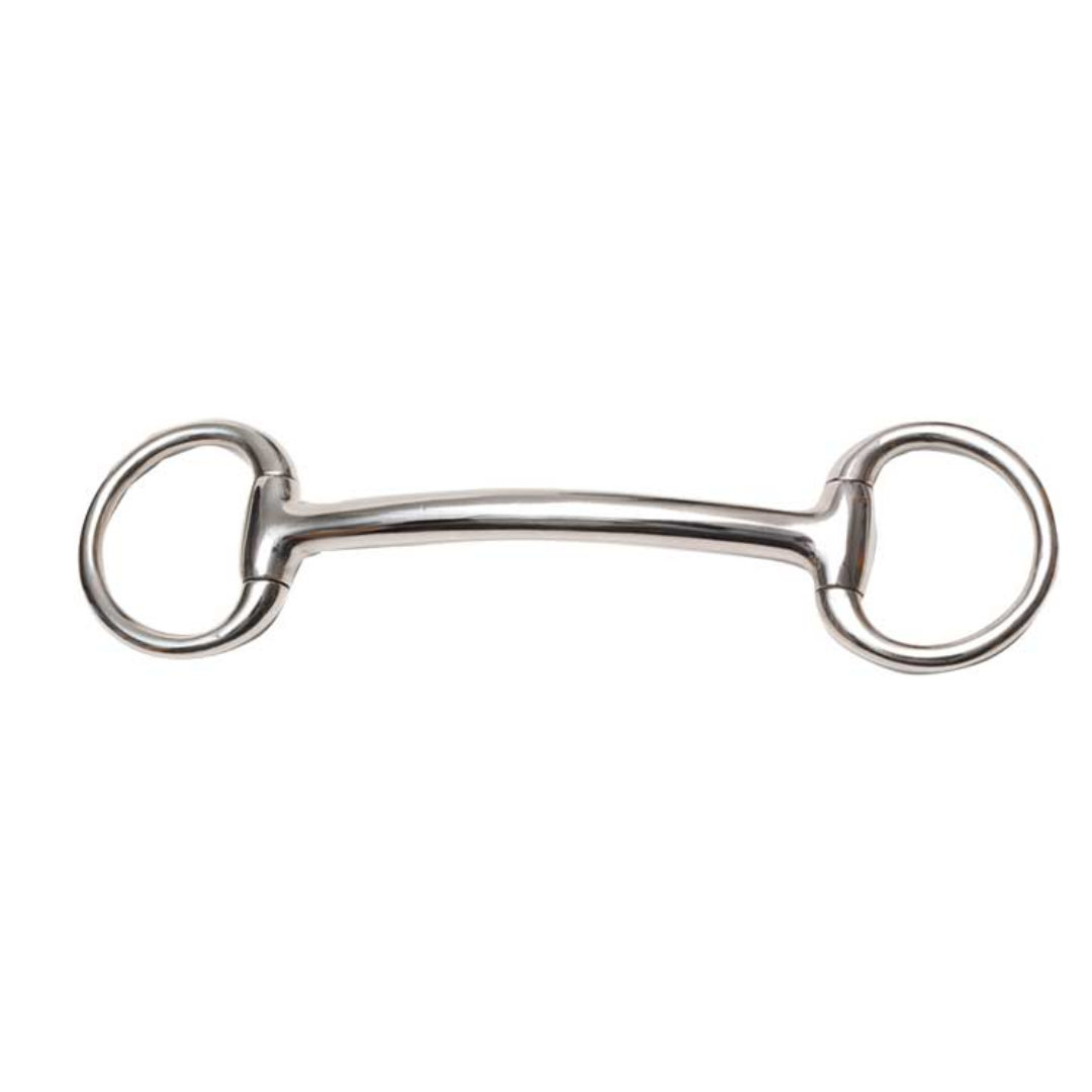The curved mouthpiece of this bit avoids the nutcracker action of jointed bits. The small round ring makes this a neat, fine bit which is ideal for showing. Stainless Steel.