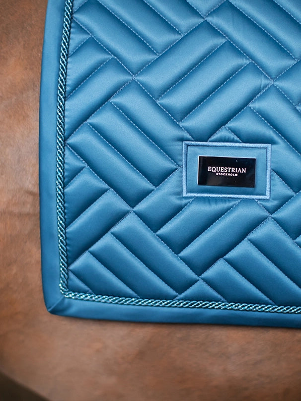 Elegant saddle pad with modern maze quilting in a blue color with silver and white details. Decorated with the Equestrian Stockholm badge in silver. The bamboo material is perfect all year round due to its thermal regulating effect – cooling in the Summer and warming in the Winter. It is also quick dry, moisture wicking, and anti-bacterial. Style with other pieces from the Amalfi collection for a head-to-toe stylish look.