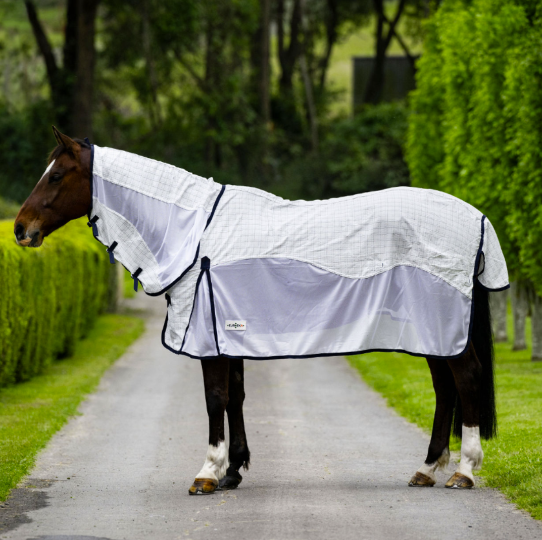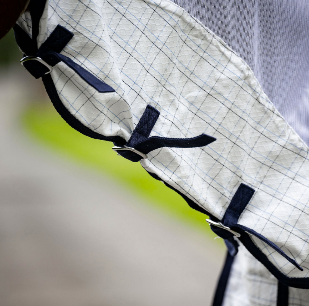 This rug features a durable polycotton topline paired with a lower insert of 130gsm breathable, lightweight mesh - perfect for keeping your horse cool and comfortable. Made from a quality blend of 80% polyester and 20% cotton, it offers a great balance of durability and softness.