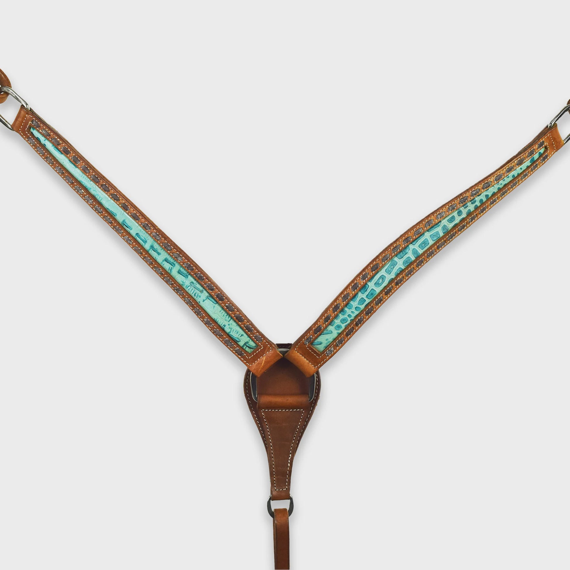 Ezy Ride leather breastplate, backstitched with turquoise croc inlay.