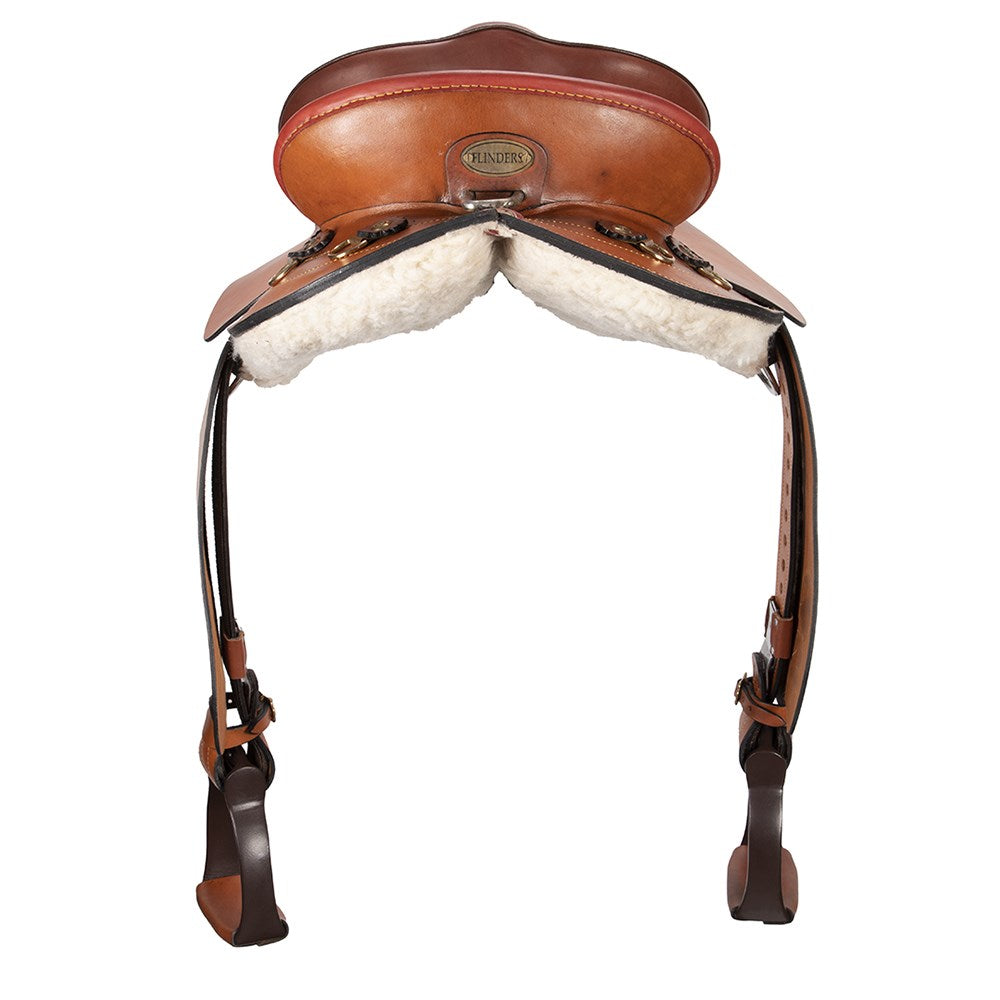 The Flinders Swinging Fender Mark II is a luxurious and modern take on the traditional swinging fender saddle. This upgraded Mark II saddle is constructed of premium leather and solid brass hardware for a timeless look. The improved seat offers a new and improved position for optimal comfort and support. The fleece padding has also been improved to provide extra cushioning for the rider. The saddle features contrasting leather piping, enhancing the overall aesthetics of the saddle. This classic saddle is perfect for anyone looking for a timeless piece that provides maximum comfort. With its durable construction, luxurious feel and classic look, the Flinders Swinging Fender M.II is a must have for any rider.