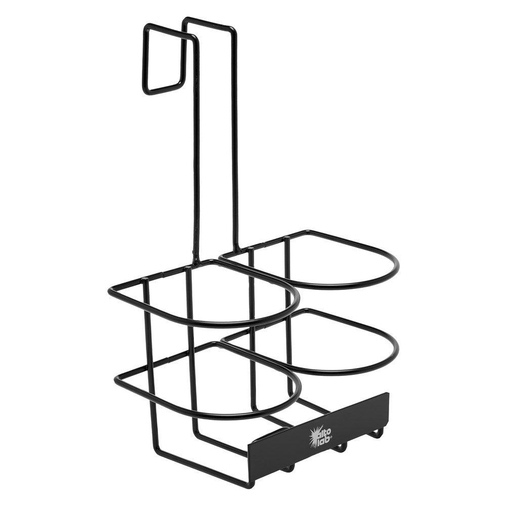 • Keep your shampoo and conditioner off the ground with this portable grooming bottle holder.