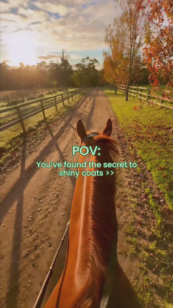The natural way to enhance your horse's coat. Conditions skin, maintains hydration, enhances shine and suppleness of the hair. Our formula and manufacturing process is backed by extensive research and development by cosmetic and chemical engineers. Our oil is packed with the power of naturally hydrating ingredients that soothe, nourish & protect your horse’s skin & coat, ensuring a naturally shiny & healthy coat.