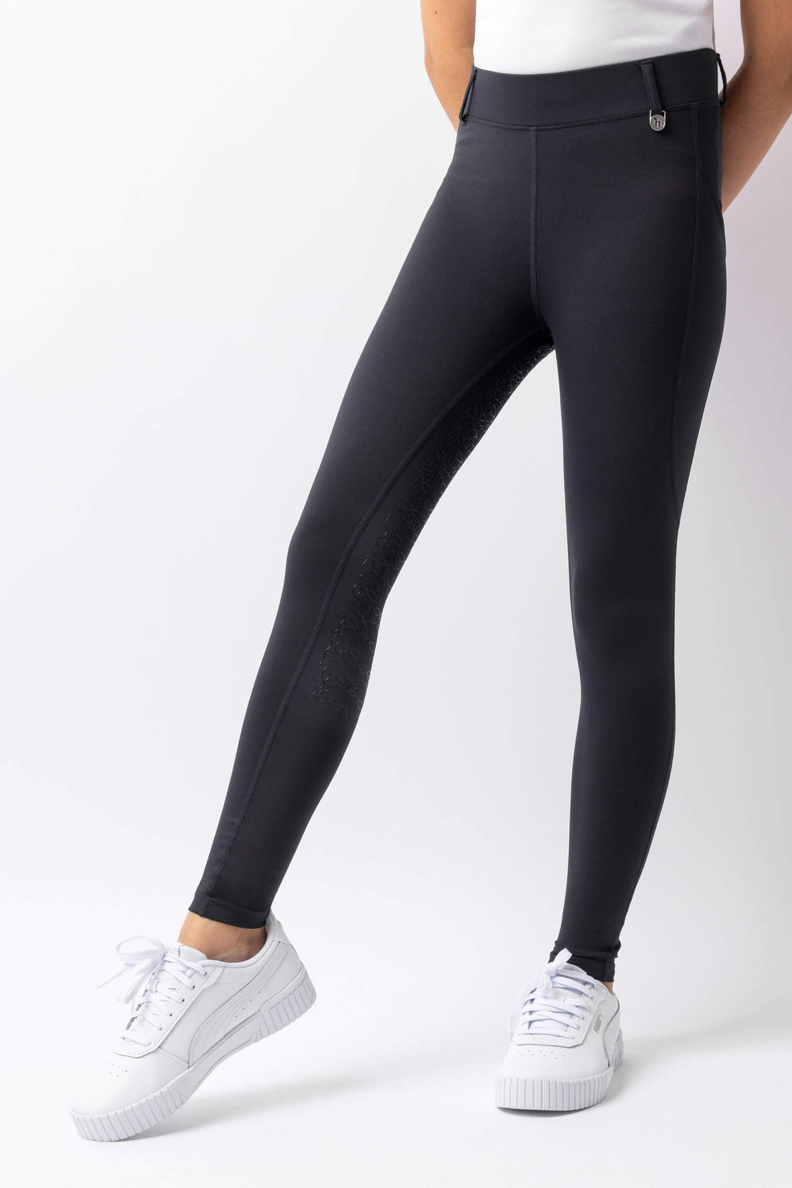 These Kids' Full Grip Riding Tights offer a perfect combination of comfort and functionality. Made from durable shell fabric with a stretchable fit. The belt loops provide an option for additional support. Phone pockets ensure practical storage. The silicone full grip offers stability in the saddle. Breathable and flexible – ideal for young riders.