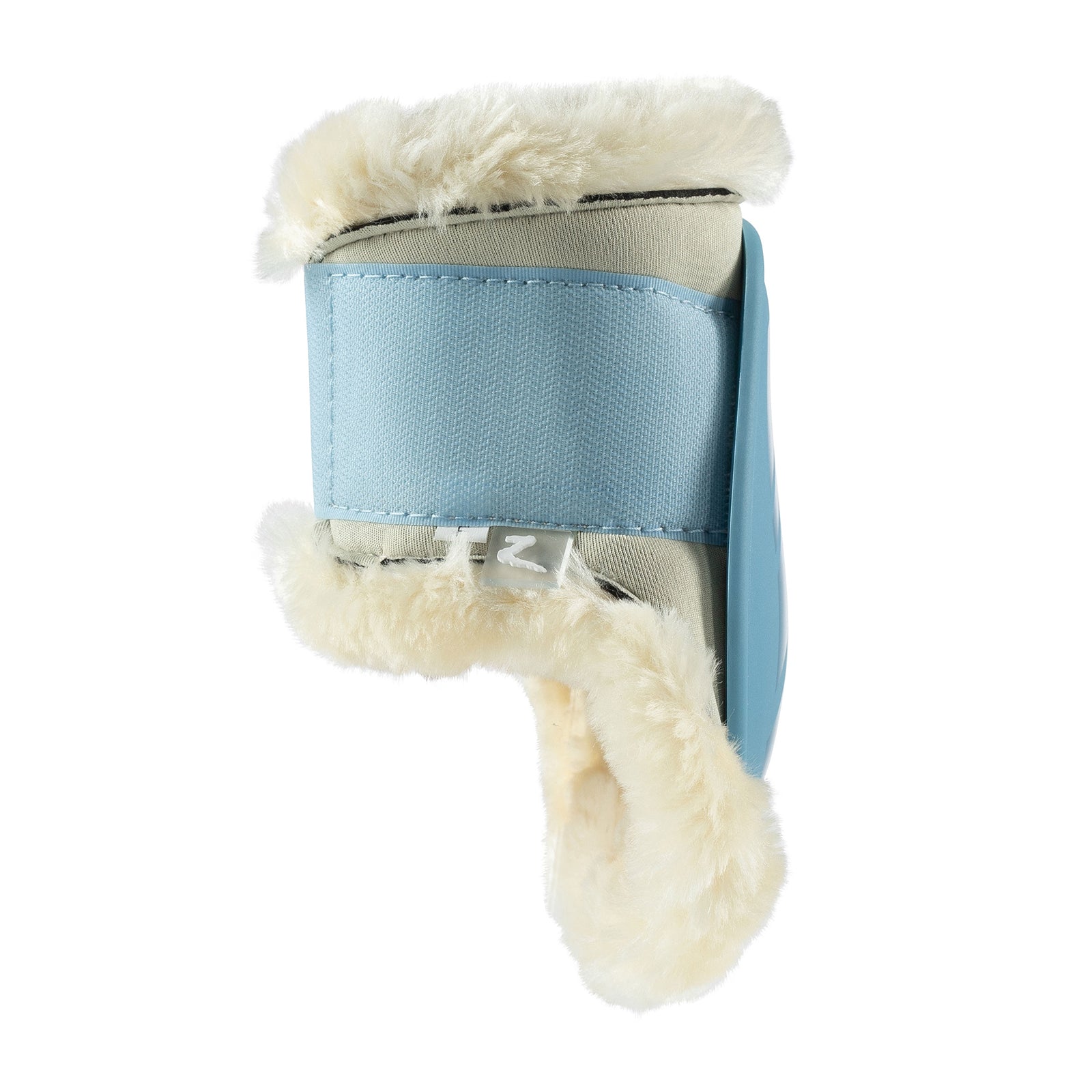 Shock-absorbing fetlock boots are lined with a faux fur for bonus comfort. Great for protecting the hind legs while jumping. Wide hook and fastener attachments keep them firmly in place. Combine with the other matching Caliber products for a complete set.
