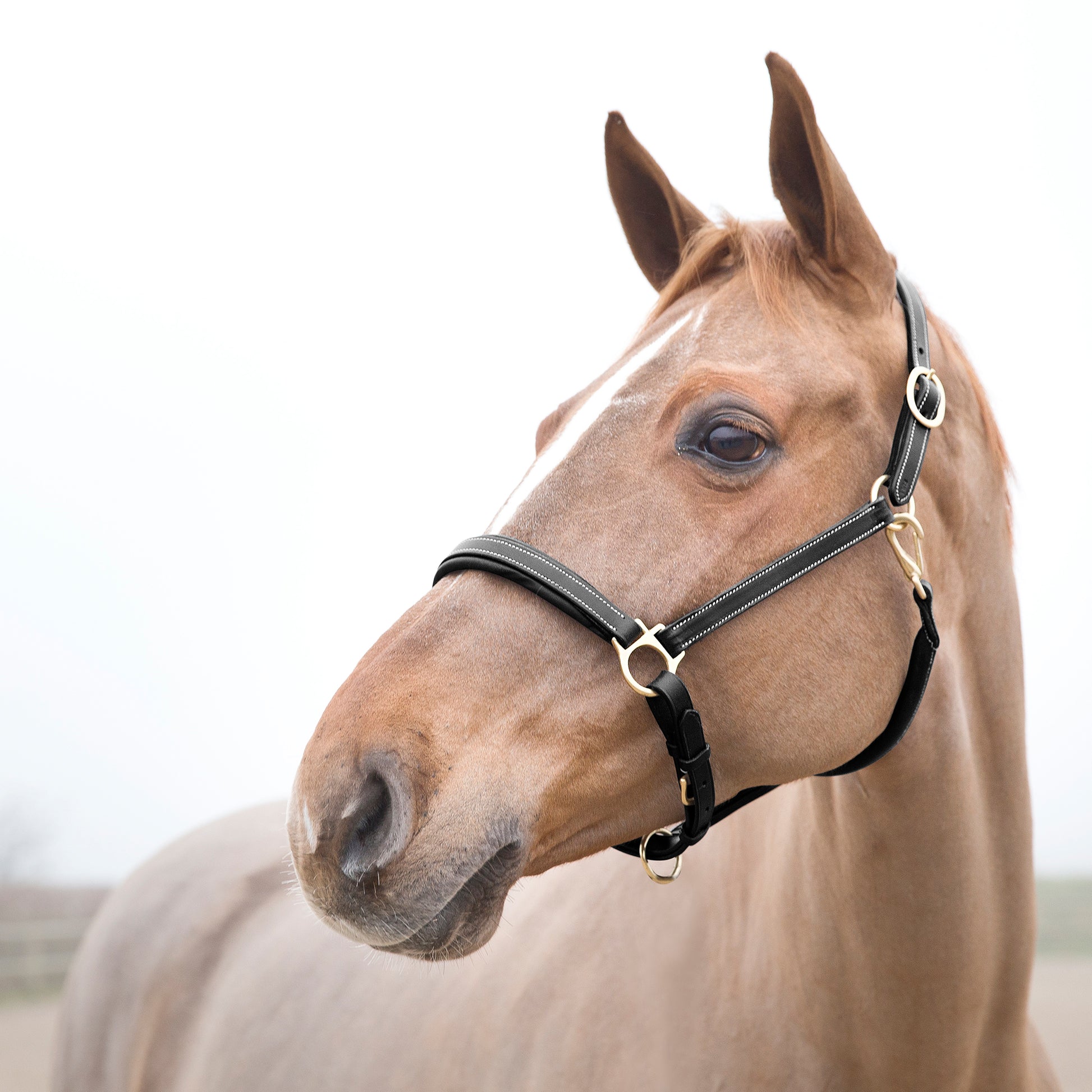 The Halter is finished with brass fittings and contrast white stitching for an elegant look.