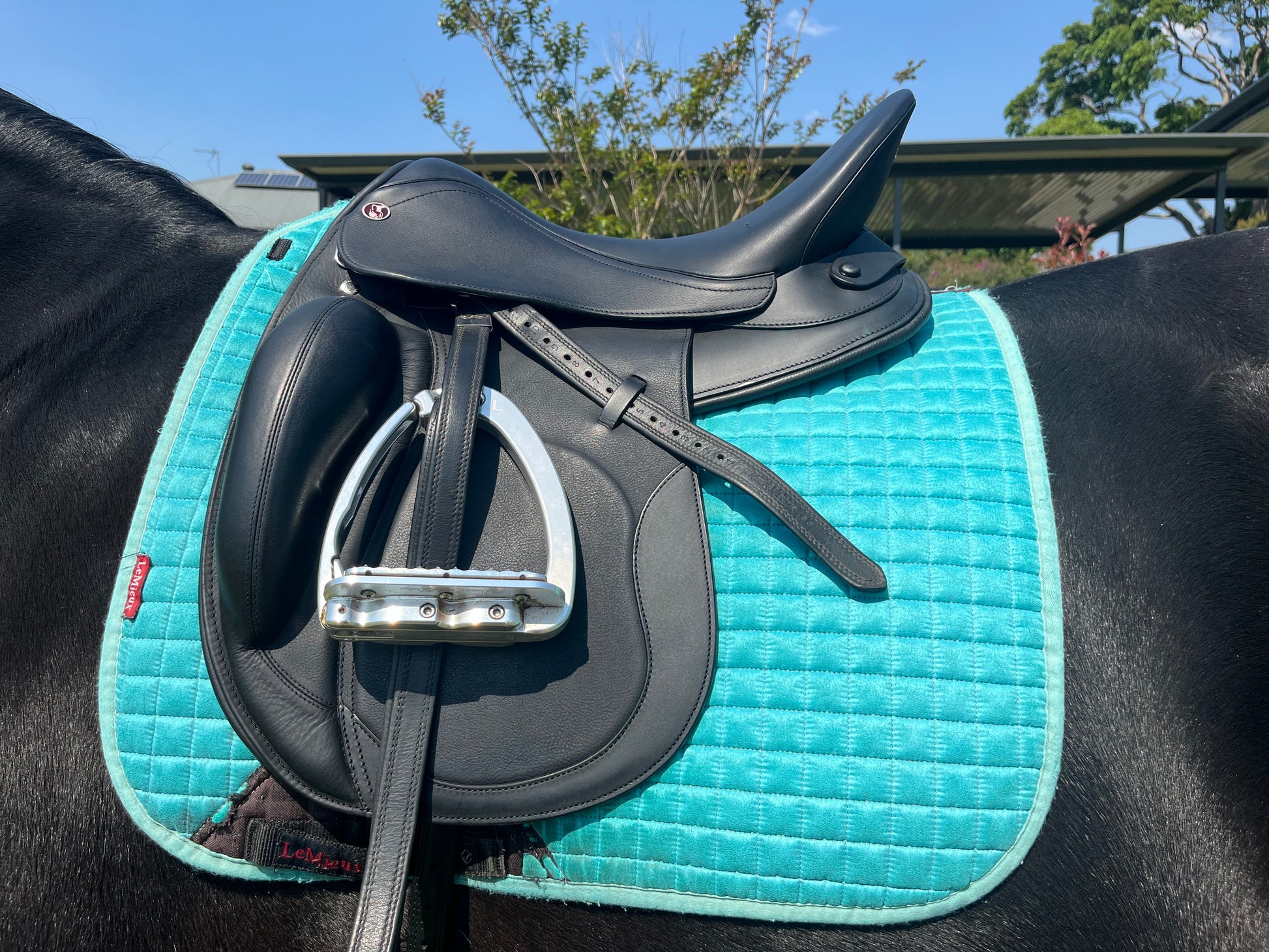 The dressage saddle ‘Brugge’ expands the saddle range of Kieffer to meet the requirements of horses with a sturdy build and a shorter back. This model combines elements of a classic dressage saddle, like seat and saddle flaps, with an extra-wide contact area based on a foam panel to allow an optimal position on the horse’s back.