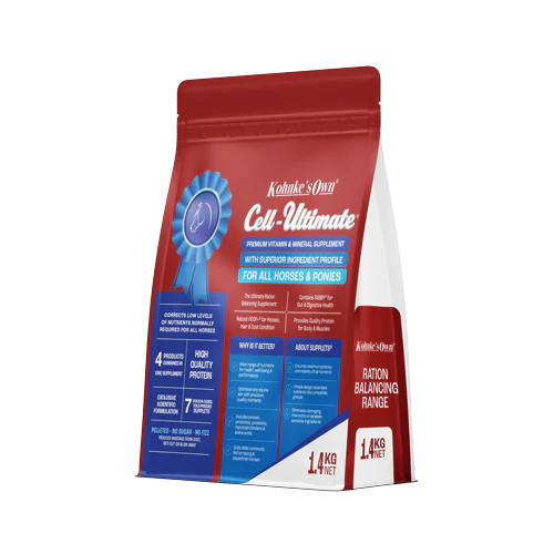 When only the best will do, Cell-Ultimate® is the superior choice for equine nutrition. The most all-inclusive, comprehensive dietary supplement ever created! It combines the most popular Kohnke’s Own supplements as a complete and premium formulation, saving you money and feed preparation time!