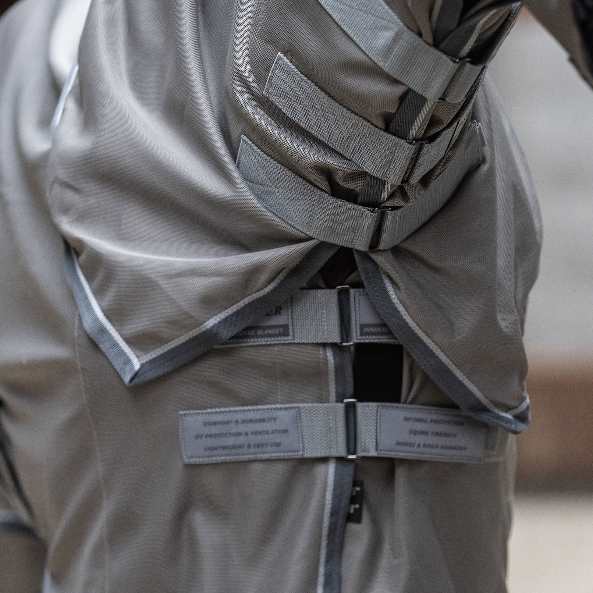 The fly protection blanket Insect Master provides full coverage to keep your horse safe from annoying insects with its durable and breathable interlock mesh fabric. It features 80% UV Protection, a detachable belly part, and neck cover for customizable protection.