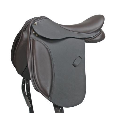An English saddle with a deep seat. The Lucardie saddle has a synthetic tree which can be widened out to triple extra wide on a heat machine by a qualified UK Master Saddle fitter.