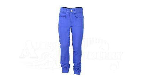 A Woven Denim Hipster Jodhpur with double pocket front belt loops and double snap closure.