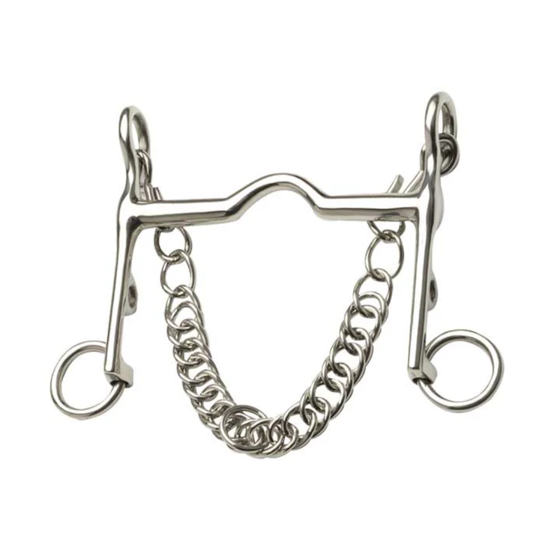 Stainless steel fixed cheek weymouth with low cambridge ported mouth. Can be used on it's own, but more commonly and traditionally used with an eggbutt bradoon in a double (weymouth) bridle.