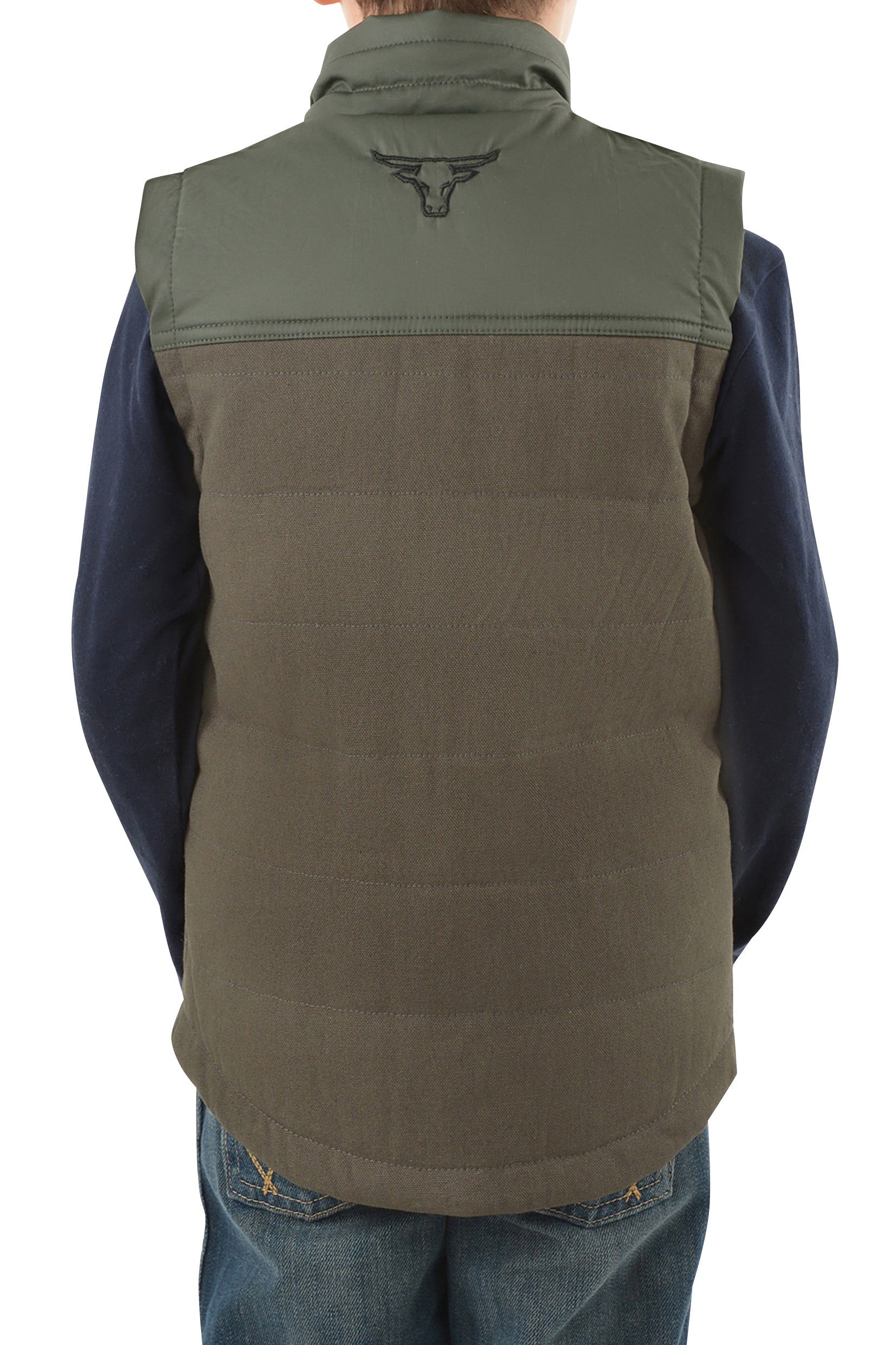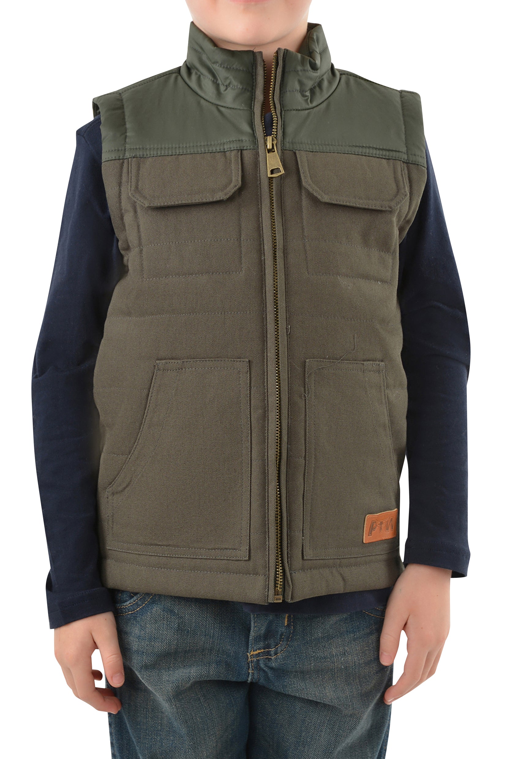 - Durable heavyweight canvas vest with waxed coated canvas yokes and collar