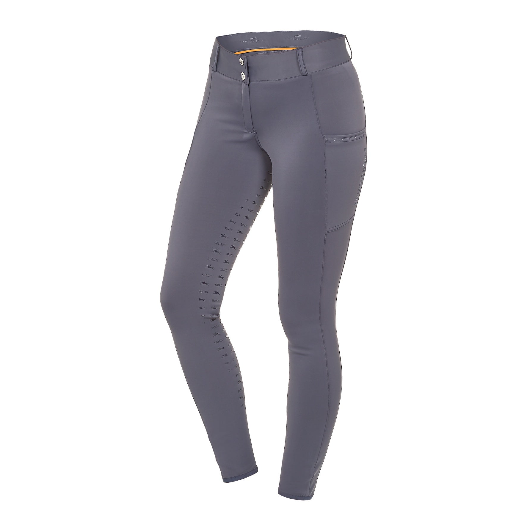 A perfect choice for everyday life in the stable is the sporty elegant ladies riding breeches Carla Style from Schockemöhle Sports. They are dimensionally stable, breathable and quick-drying. The breeches are fashionably convincing with their wide waistband with belt loops, a side cell phone pocket with rhinestone decoration and a logo pendant on a belt loop.