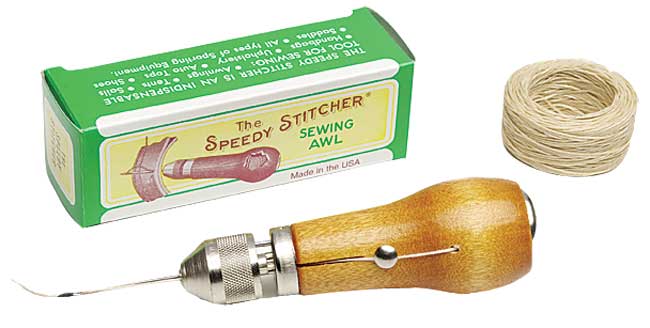 A traditionally styled sewing awl. The thread is stored inside the handle and threads up through the needle at the top. It is used to create lock stitches and is perfect for making repairs to leather or canvas. This comes complete with needle and spool of waxed thread.
