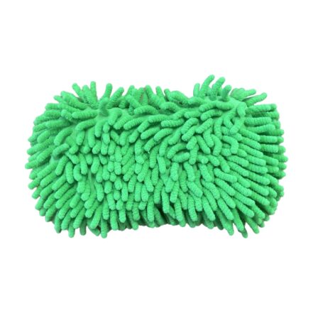Sponge with micro fibre shag type mitt on the opposite side of the sponge with an elasticated handle.