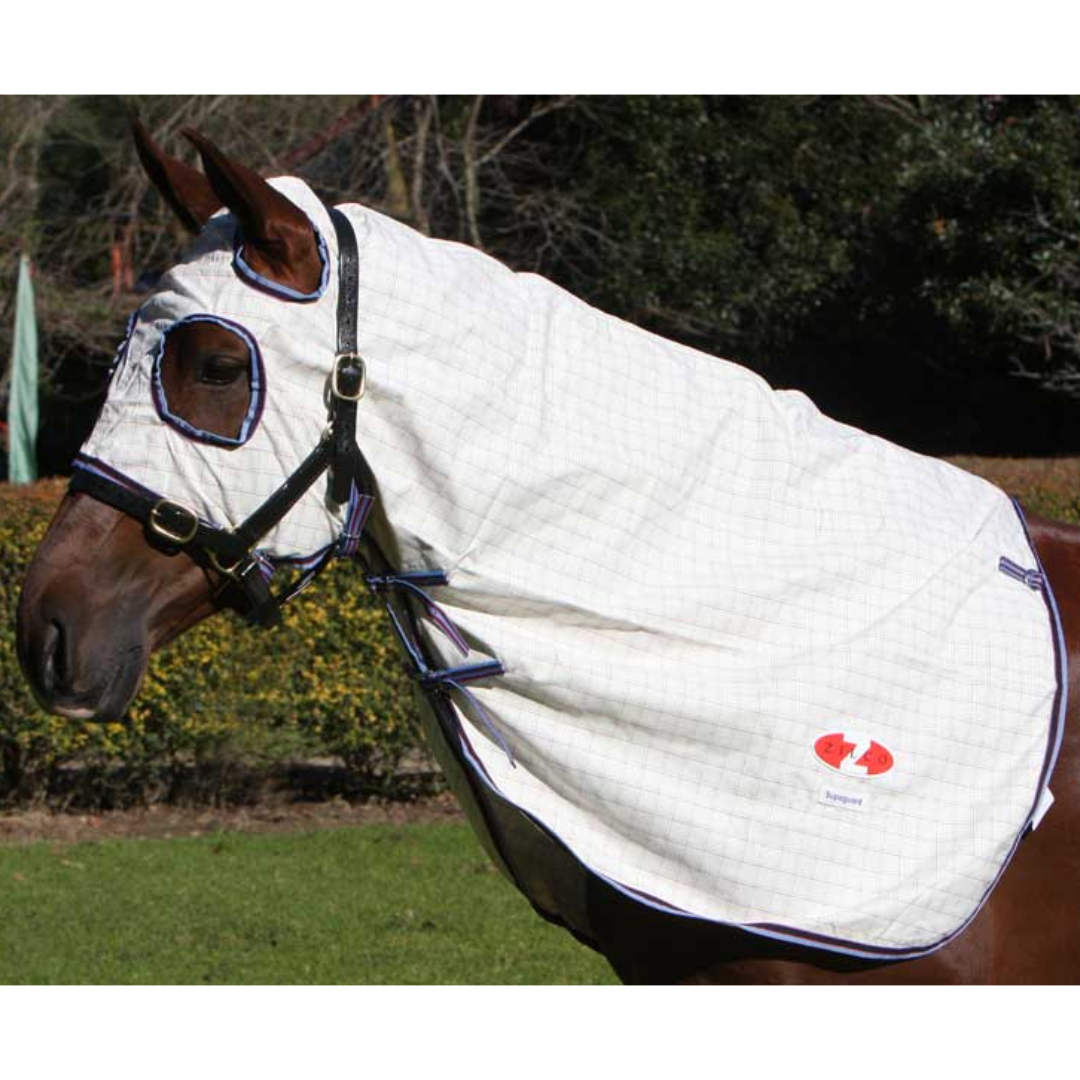 Defender Supaguard Hood Fawn White Blue & Red
