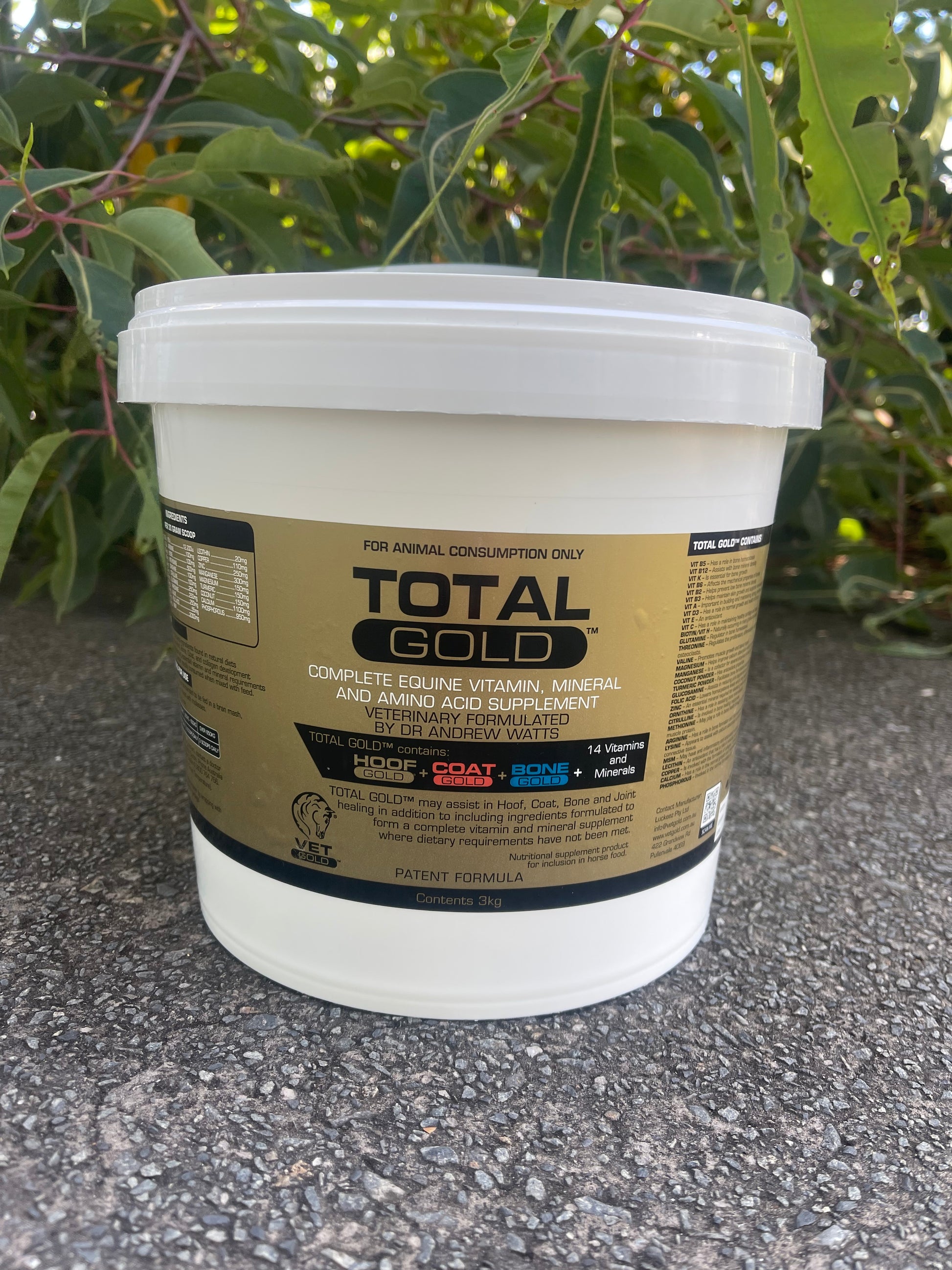 As a supplement, TOTAL GOLD is a convenient powder that binds well in a moistened feed, bran mash, molasses or water.