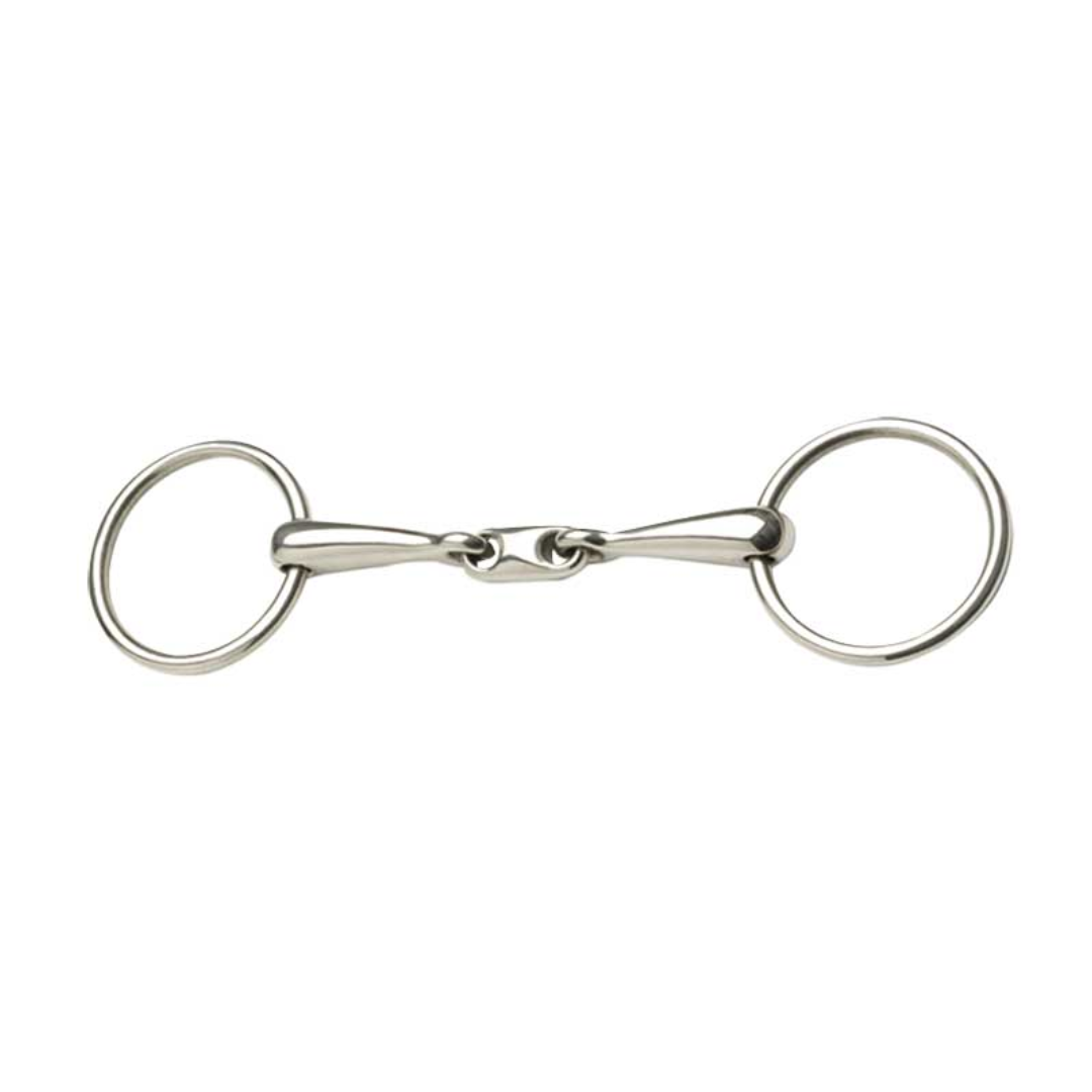 The Training Fine Mouth Bit is a stainless steel double jointed bit. The double joint helps eliminate the nutcracker action in the horses mouth.