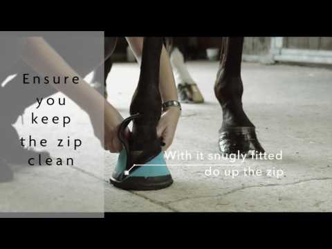 A unique close fitting hoof boot designed to keep wounds, poultices and dressings clean, and reducing the amount of bandage needed. This boot is suitable for use in the stable and can be used on sensible horses in the paddock. The boot is designed using flexible and light materials to enable easy fitting and as a cost effective alternative to adhesive bandage and tape. Bearing this in mind, exuberant horses and those having undertaken a period of stable rest may damage the boot by standing on it or doing racing stops. In these situations you may wish to consider placing an overreach boot on top of the medical hoof boot or using a more traditional poultice for the first day turned out.