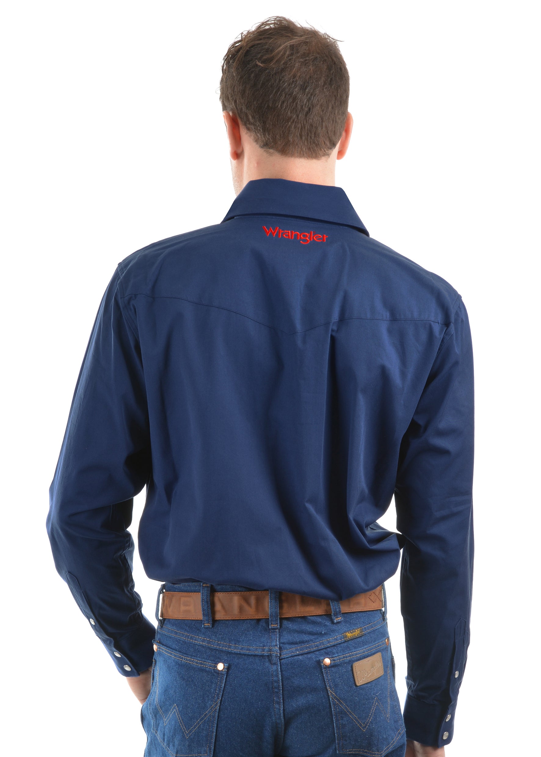 Wrangler Logo Rodeo Long Sleeve Drill Shirt Navy